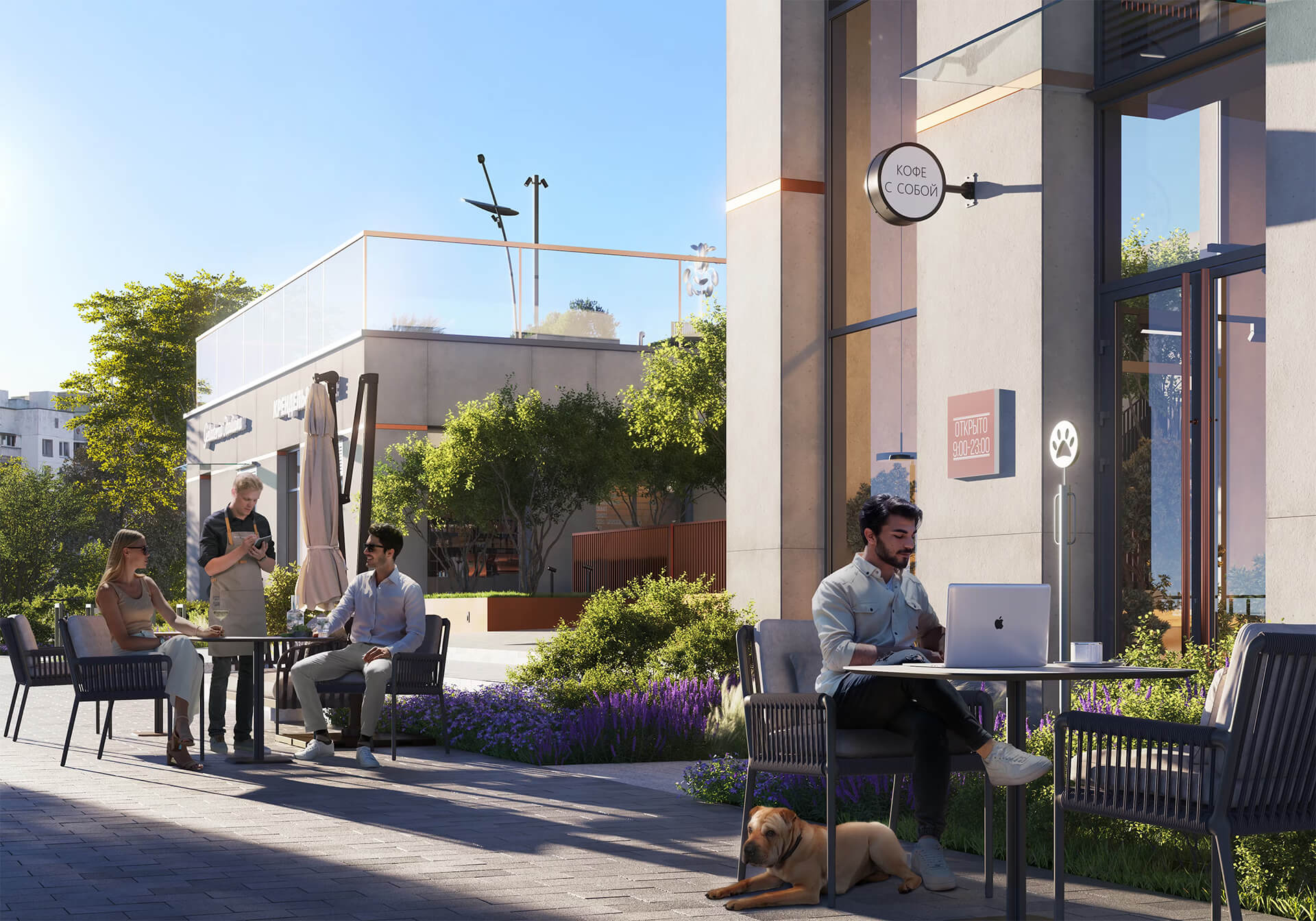 На территории комплекса предусмотрены общественные пространства для встреч и отдыха, а также зоны для работы и деловых переговоров. The Lake — это место, где городская инфраструктура сочетается с уединением и природной гармонией.