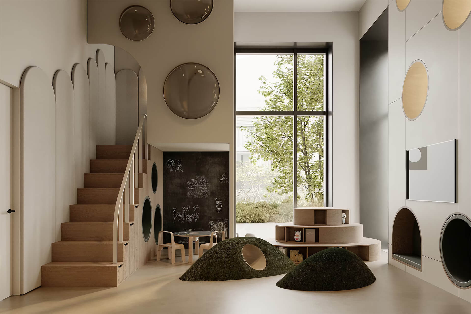 Пространство зонировано таким образом, чтобы жители могли использовать его как место для встреч, отдыха или работы. Коворкинг-зона с удобными рабочими местами и высокоскоростным интернетом делает лобби не только местом для ожидания, но и полноценным офисом для тех, кто ценит мобильность.
